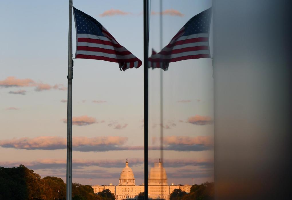 这是10月8日在美国华盛顿拍摄的日落时分的国会大厦。新华社记者 李睿 摄