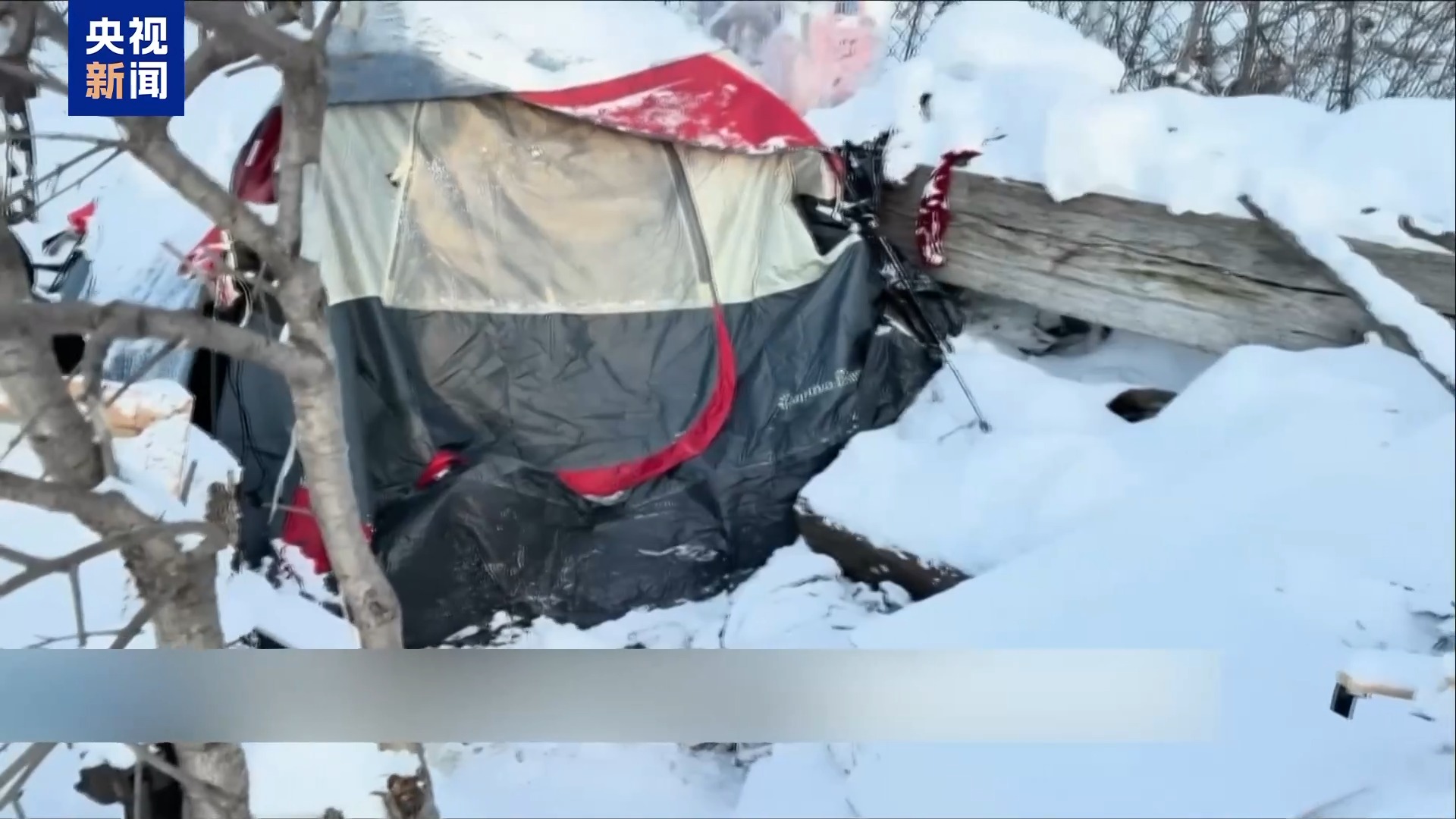 极端低温使美国许多无家可归者面临生命危险。在密歇根州大急流城,当地慈善组织在大雪覆盖的街边树林里发现一名无家可归者,她栖身在一顶单薄的帐篷中抵御寒冷。