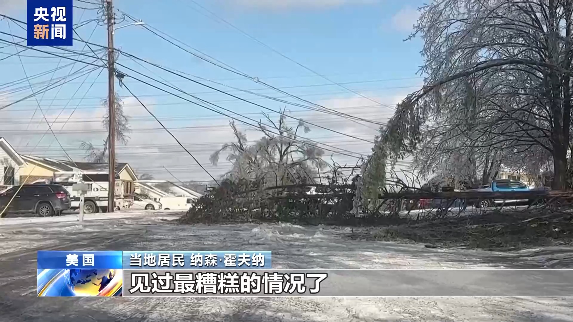 由于大雪、冻雨导致多地树木和电线断裂,美国多州出现大范围电力中断。当地时间26日,密西西比州和田纳西州部分地区断电最为严重。据悉,密西西比州部分地区正遭受自1994年以来最严重的冰暴袭击。