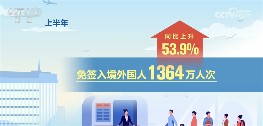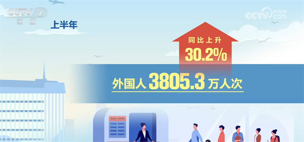 上半年,全国移民管理机构累计查验出入境人员3.33亿人次,同比上升15.8%;其中,外国人3805.3万人次,同比上升30.2%。免签入境外国人1364万人次,同比上升53.9%。