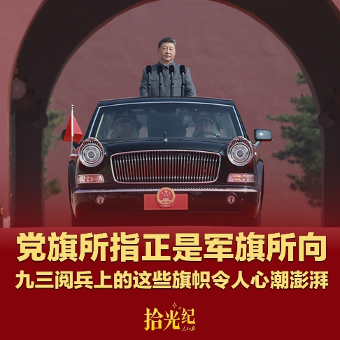 习近平向党旗、国旗、军旗行注目礼、刘老庄连沿用着当年的战旗样式……九三阅兵上的这些旗帜令人心潮澎湃。