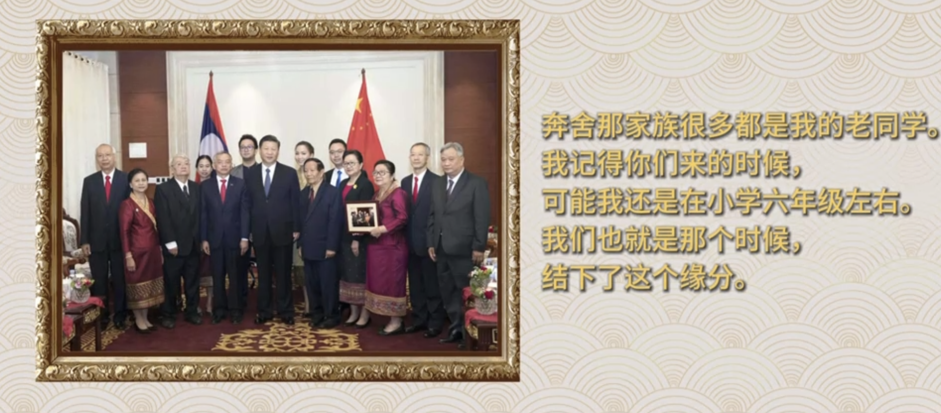 2017年11月,习近平总书记在会见老挝奔舍那家族友人时动情地说:“奔舍那家族,很多都是我的老同学。我记得你们来的时候,可能我还是在小学六年级左右。我们也就是那个时候,结下了这个缘分。”