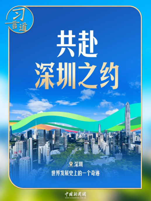 “深圳地处太平洋沿岸,几十年间从一个落后的小渔村发展成为现代化国际大都市,是中国人民创造的世界发展史上的一个奇迹,也是中国坚定不移奉行互利共赢开放战略的重要窗口。”