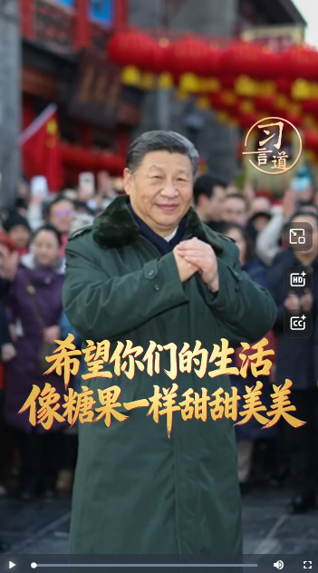 每逢春节前夕,总书记都会走到基层、百姓中间。在天津古文化街,总书记掏钱买麻花作为见面礼,送给身旁的小朋友,说“送你一份麻花”;在辽宁,总书记接下孩子们递来的糖果,亲切地说,你们的糖我收下,吃了你们的糖心里很甜。一个个亲切有爱的感人画面,充满了温情,传递着感动。