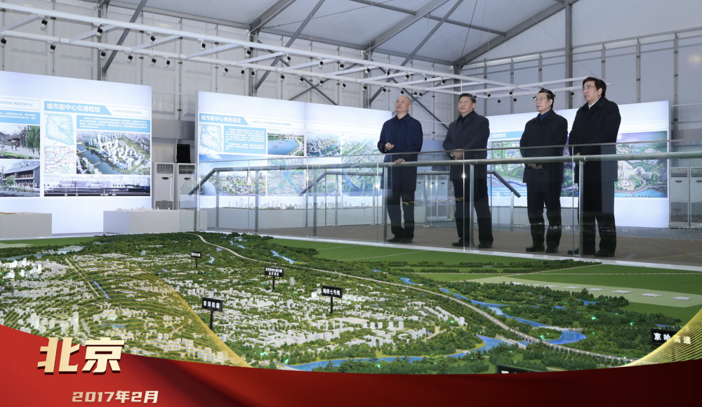 2017年2月24日,习近平总书记在北京城市副中心行政办公区建设现场指挥部察看规划沙盘,了解副中心建设理念、目标定位、文化保护等情况。创新为要、“瓣瓣同心”,总书记的战略擘画,引领京津冀协同发展走深走实。