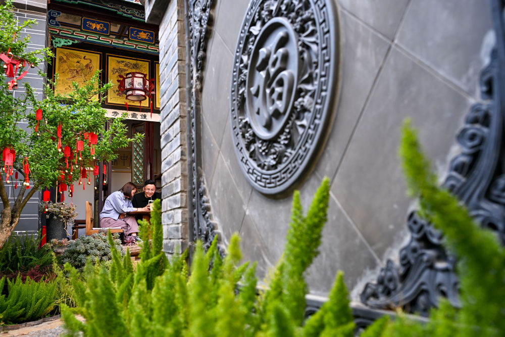 2026年3月24日,游客在会泽县白雾村的“读白书院”休闲。“读白书院”由清代楚黔会馆活化利用改造而成,是当地活化利用古建筑、推动乡村文化与旅游融合的代表性空间。云南省曲靖市会泽县娜姑镇白雾村历史悠久,曾是明清时期“南铜北运”的首站,村内古迹众多,风景如画。