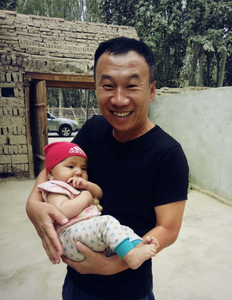 天津援疆干部席世明抱着维吾尔族小姑娘“小石榴”(资料照片)。新华社发