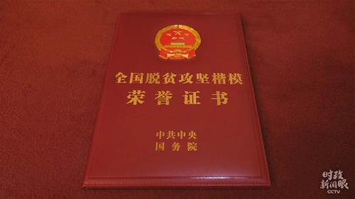 △“全国脱贫攻坚楷模”荣誉称号奖章与证书(总台央视记者彭汉明拍摄)