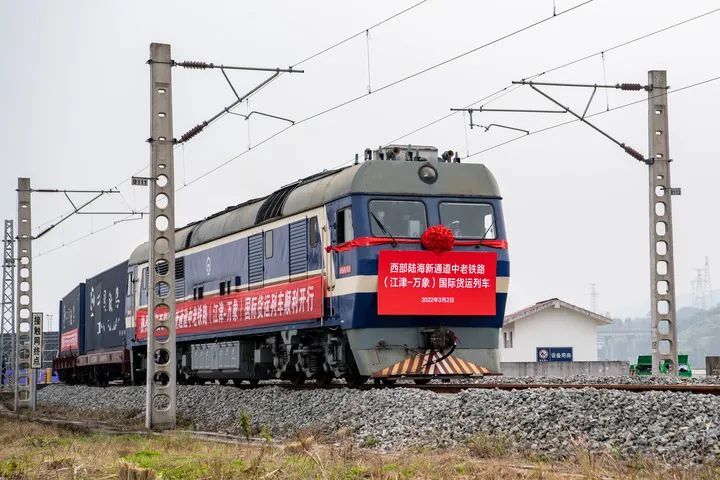 2022年3月2日,中老铁路(江津–万象)国际货运首发列车从重庆小南垭铁路物流中心驶出唐奕摄/ 本刊
