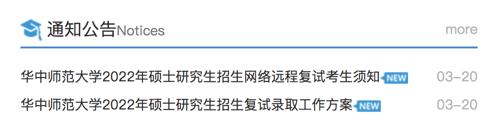 3月20日,华中师范大学也明确,复试工作采取网络远程方式,时间一般安排在3月下旬和4月初,具体时间以校内各招生单位复试细则公布的内容为准。