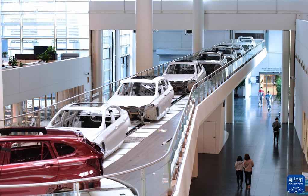 2月16日,在华晨宝马沈阳铁西工厂,生产中的车辆穿过办公区。新华社记者杨青摄