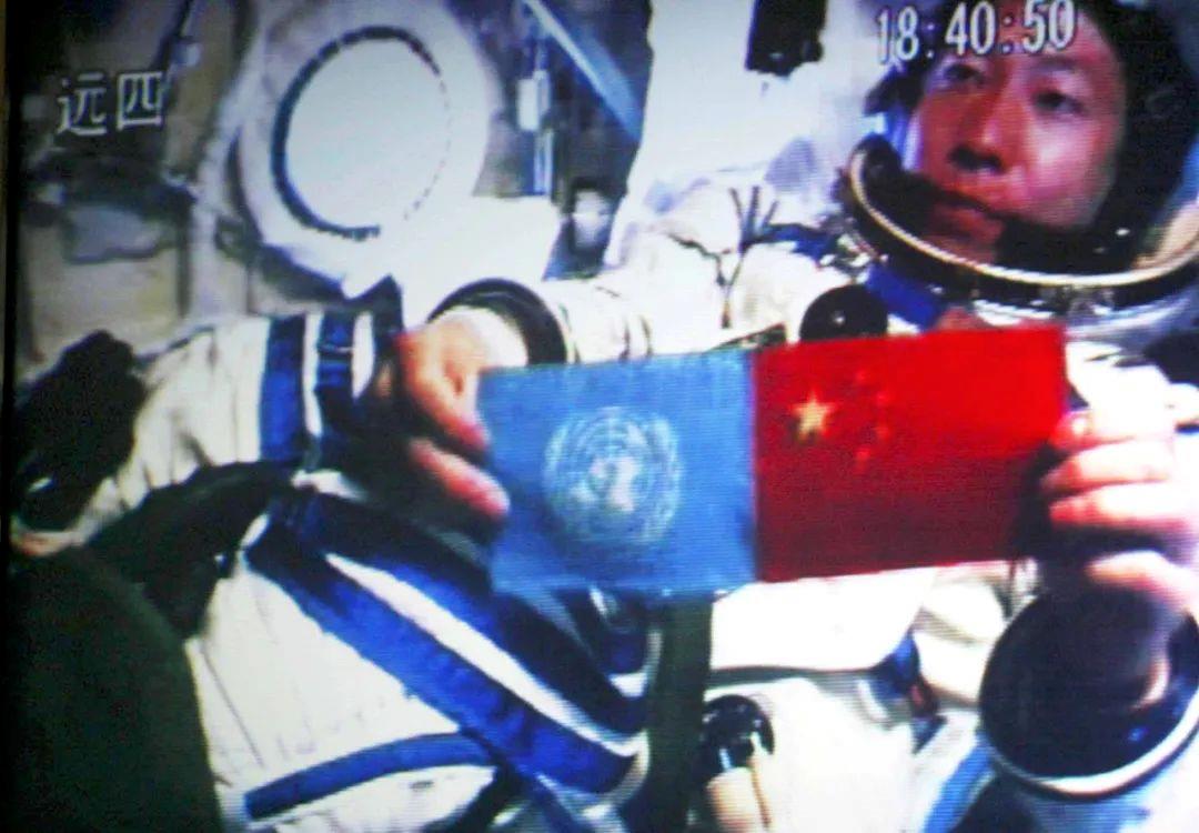 △2008年,翟志刚手持五星红旗进行太空行走。