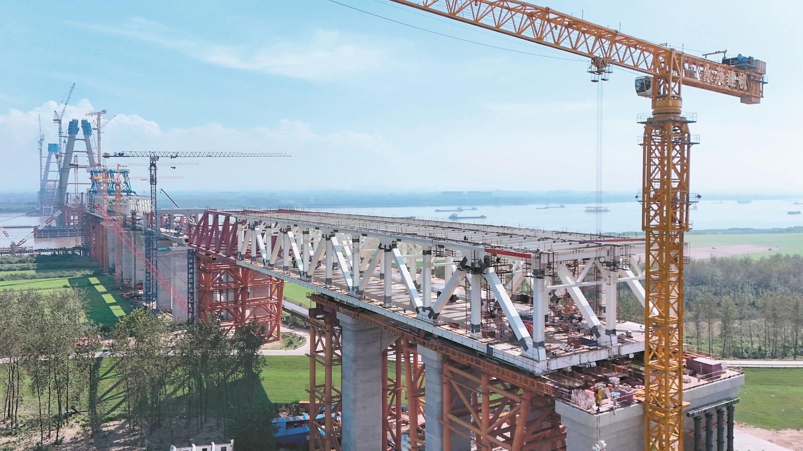 9月19日,池州长江公铁大桥一标项目跨江堤140米钢桁梁吊装完成。大桥全长3108.5米,是安徽省第六座跨江公铁两用桥梁,建成运营后,将有力完善安徽省路网布局,提升皖南地区综合交通发展水平。记者 李博 通讯员 谢啸天 摄/视觉安徽