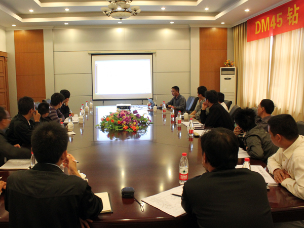 培训分为理论知识培训与现场操作培训两大部分。在枞阳海螺公司宾馆二楼中会议室,技术专家通过幻灯片的形式,从钻机气路工作原理、液压系统构造、控制元件功能、电气元件分布识别以及钻机常见故障分析和诊断、故障排查遵循的原则等几个方面图文并茂地向参培人员详细介绍了DM45钻机操作及维护保养要点。