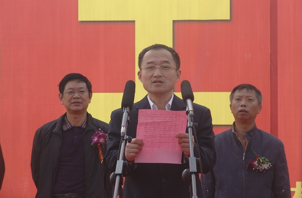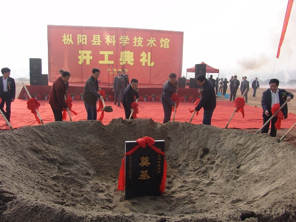 枞阳在线消息 11月28日,在县城银塘东路的黄金地段,鞭炮轰鸣,汽球高悬,在一片热烈的喜气庆氛中,枞阳县科技馆举行开工典礼。市科技局局长方争鸣、市科协副主席方朋华、县领导何谦、王建国、何宗华、唐燕曙、付和平、吴文祥出席典礼仪式。县长何谦致辞并宣布工程开工,副县长吴文祥主持典礼仪式。市县领导挥锹培土,为工程奠基。