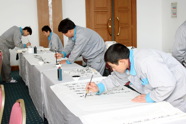 本次书画比赛分为书法类和绘画类,其中书法类又分为软笔类和硬笔类。该公司周全考虑,提前全程策划比赛流程,由相关人员提前准备笔墨纸砚等比赛用具,13日上午,参加比赛人员提前10分钟到达比赛场地,在简单热身之后,书法比赛正式开始。