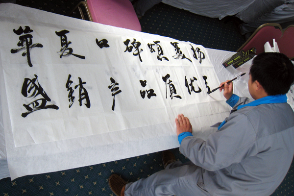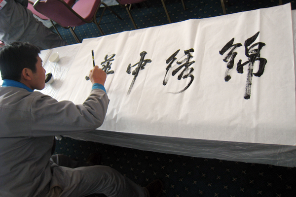 “没有,我要随感而发,表达真情实感”,一参赛人员随即写下“锦绣中华”四个大字。