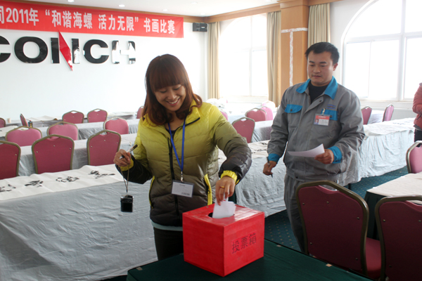 2011年12月13日上午9:00,伴随着优美的音乐歌声,枞阳海螺“和谐海螺 活力无限”主题书画比赛在该公司宾馆二楼会议室隆重拉开序幕,参赛选手们尽情挥毫泼墨,展现赛场风姿。