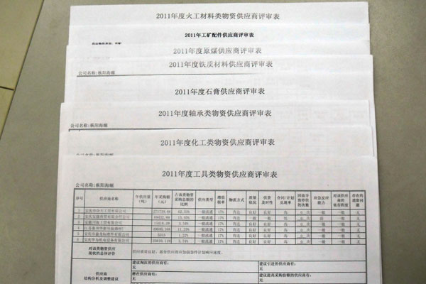 为建立科学的供应商评审机制,持续改进产品及服务质量,优化供应商队伍,形成满足公司需求的供应商队伍,12月中旬枞阳海螺开展了2011年度供应商评审工作。