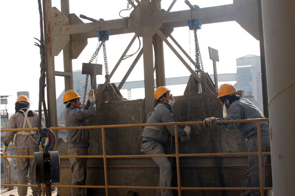 时令已进入三九腊月,天气异常干冷,在公司领导班子的正确领导和鼓舞下,全体参检人员积极克服困难,以饱满的精神状态投入检修工作,严格按照检修方案和安全操作规程进行作业。钻机轰鸣、焊花繁星四溅、切割机划出七彩虹,高耸的脚手架上,他们的身影仿佛在半空中飞舞,隐约看到鲜艳的黄色安全帽在跃动,这是他们埋头苦干的身影,是他们对工作的尽职,对从事岗位的热爱,也是公司的检修任务能顺利完成的重要保障。