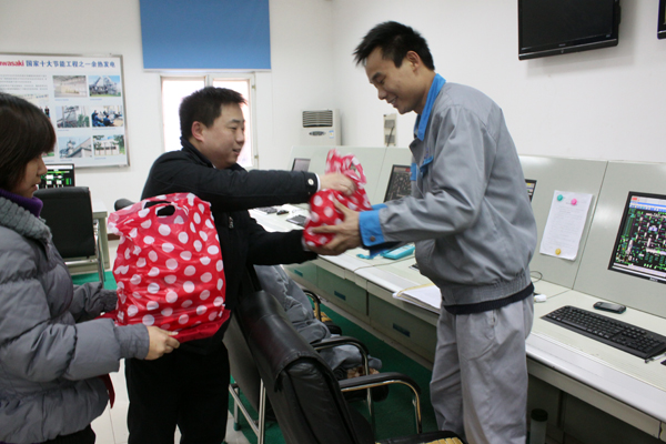 下午16:20开始,公司领导及值班的中层管理人员带上热腾腾、香喷喷的“年夜饭”,从制造一分厂到制造二分厂,再到1#门岗等部门,公司领导一行将精心准备好的年夜饭送到员工手中,并向大家送上新春的祝福和诚挚的问候,让大家无不为之振奋而欢欣鼓舞。