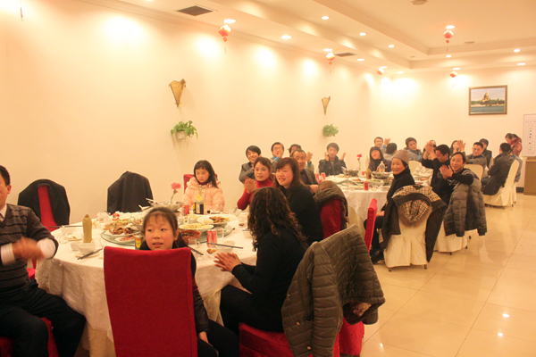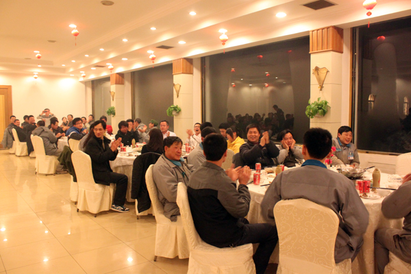 下午17:58,宾馆广场上空礼花齐放,鞭炮齐鸣,宾馆餐厅内喜气洋洋,一派祥和,公司精心准备的迎新年夜饭正式开始。公司领导、值班干部、家在外地的大中专院校毕业生和留守员工及家属吃了一个“团圆年夜饭”。