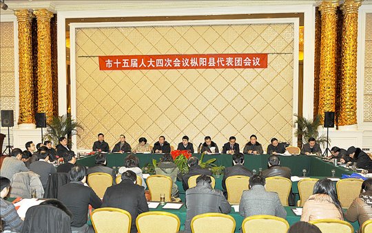枞阳县代表团的代表们认真审议《政府工作报告》。