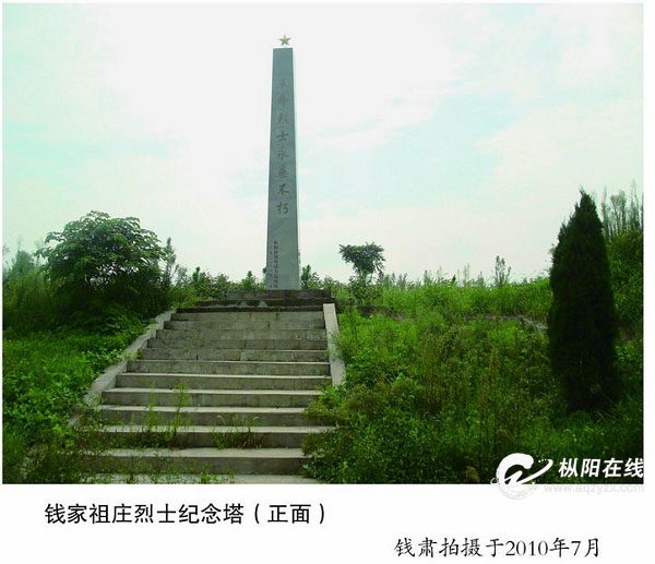 据县史志办2011年普查资料显示,钱家祖庄烈士墓位于横埠镇谋道村钱家祖村庄中。1943年10月,新四军七师沿江支队独立团二营一连在今横埠镇谋道村钱家祖庄遭遇国民党桂顽近千人,由于寡不敌众,我新四军一连指战员大多牺牲。少数战士躲进附近的村庄钱家祖庄,桂顽也不放过,进村挨家挨户搜查,将老百姓家稍值钱的东西洗劫一空,赶猪捉鸡,闹得鸡犬不宁。有一位新四军战士藏在一老百姓家的烟廉里,看到敌人穷凶极恶,忍不住向敌人开了一枪,结果立即引来桂顽四五条枪的一齐射击。事后群众发现这名战士的身体被敌人子弹射得像马蜂窝一样。敌人走后,村庄里的老百姓将这位新四军战士就地掩埋在村庄中,至今墓地尚存。2000年,老百姓自发对烈士墓地进行了简单维修,立石碑纪念。民政部门曾拨专款重修。(县委外宣办)