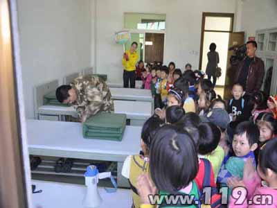 示范幼儿园师生们在消防人员的带领下,有秩序地观看了消防车辆装备,学习了消防知识教育展板、参观了内务。参观学习中,消防员为师生们详细地讲解了火灾的基本知识、幼儿园内存在的火灾隐患、如何预防火灾、遇到紧急情况时应该如何处理、消防器材的使用方法等方面的知识,同时结合火灾案例,为师生们讲授了“怎样防止火灾的发生”、“发生火灾怎么办”、“报警的方式方法”、 “如何在火场进行逃生自救”等与师生们日常学习生活密切相关的各类消防知识,并现场作了灭火、逃生演练,幼儿们对消防宣传教育表现出浓厚的兴趣,他们认真听讲、仔细观看,纷纷表示要把学到的消防知识带回家告诉父母和周边人,让更多的人掌握和了解消防安全知识。