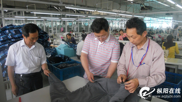 在公司生产车间,程胤副局长查看了服装生产流程、质量和商标使用情况;向公司负责人朱群益先生详细询问了公司生产经营、党组织建设、知识产权使用、物流、员工收入和劳动保障、下一步如何发展等情况,并走到正在加工服装的员工身边,亲切地和员工交流谈心,询问服装生产细节和员工生活情况。